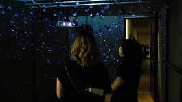 Getrackt wurden die Personen per Kinect, welche wiederum die in Touchdesigner gemappten Animationen manipulierte. Für eine gleichmäßige Klangverteilung des Herzschlags, wurden die Lautsprecher jeweils gegenüberliegend im Raum platziert.