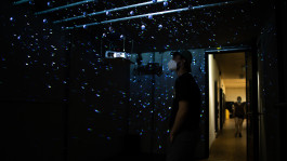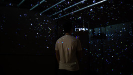 Gegebenenfalls reagiert die Installation auf die Ruhe der Person und verringert Intensität und Farbe.